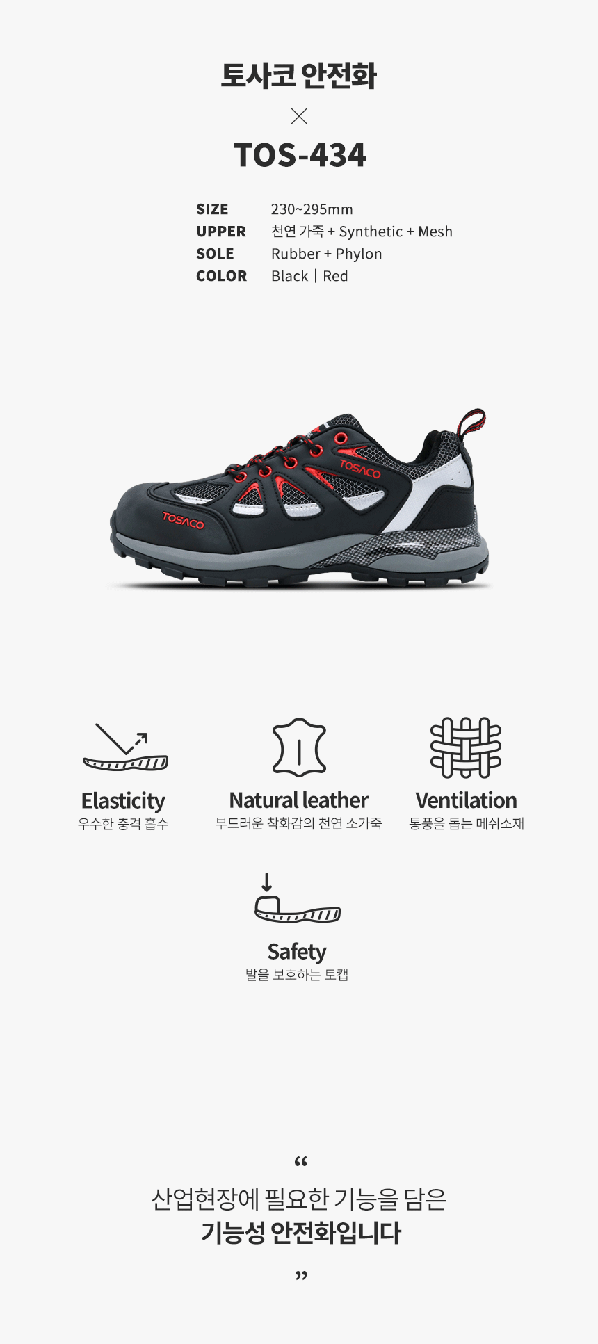 > 토사코 TOS-434 안전화 4인치 남성신발 작업운동화 근무화 230~285mm
