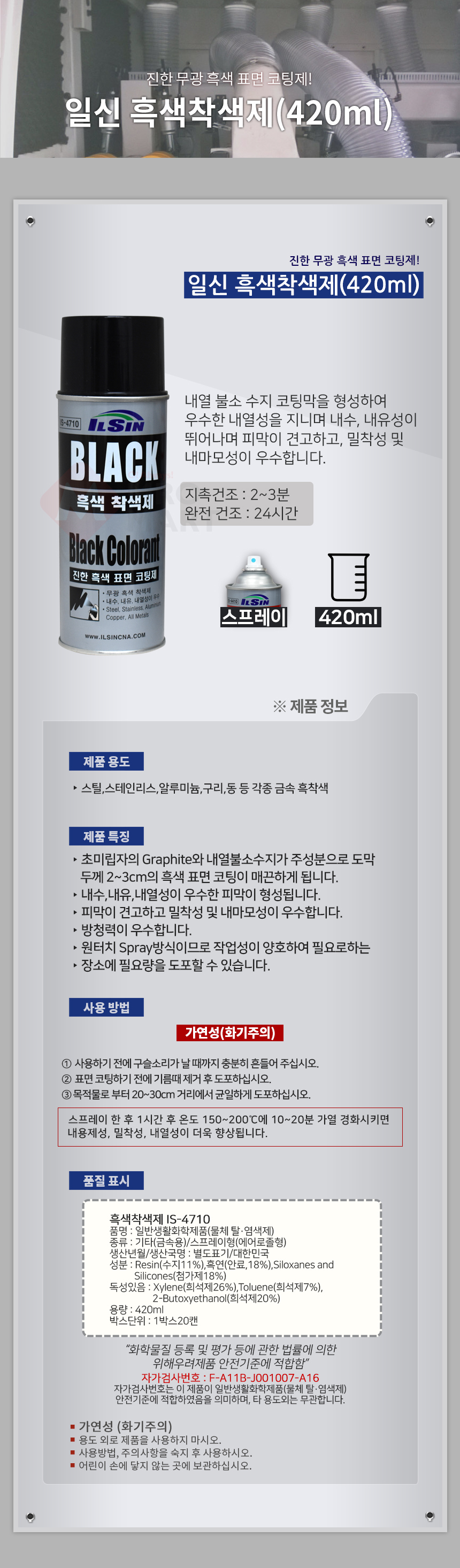 일신 상온 흑색 착색제 IS-4710 내열 부식 녹방지 방청 코팅제