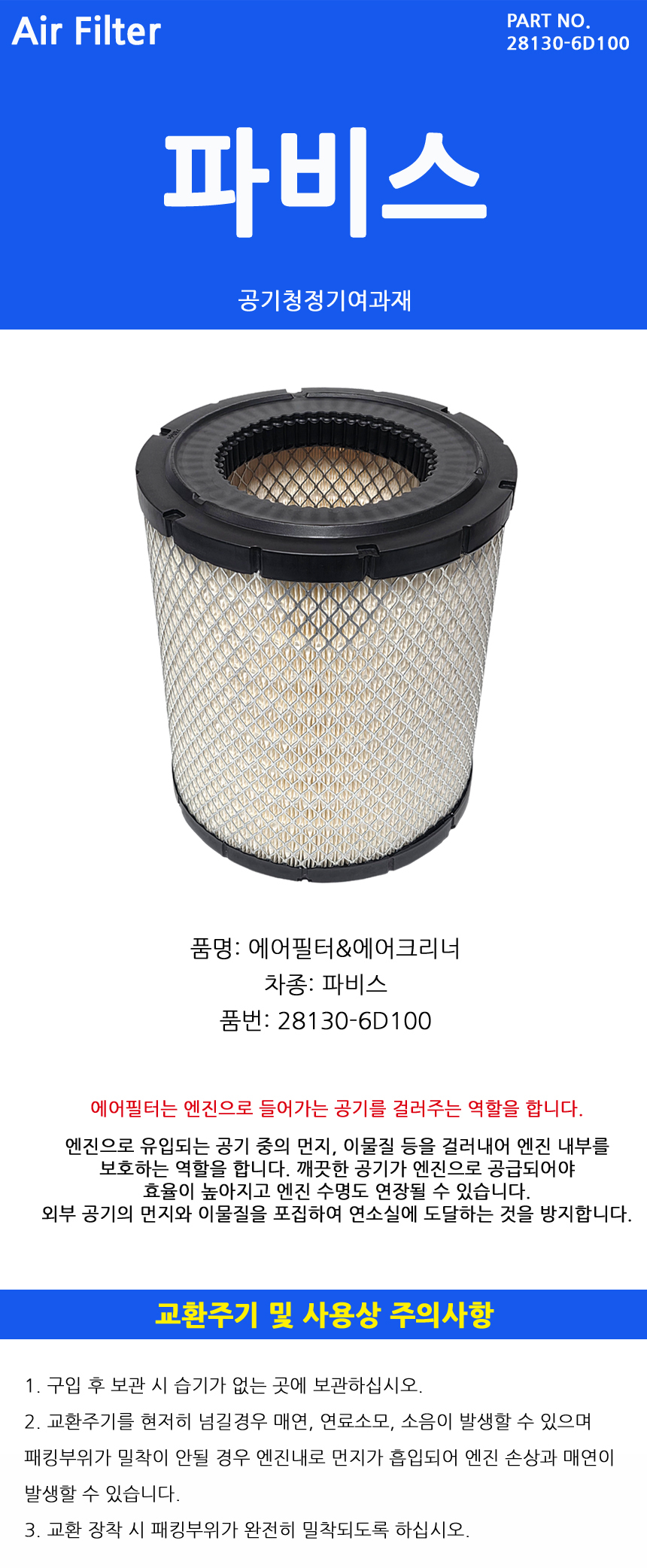 현대 파비스 엔진 에어필터 에어크리너 281306D100 공기청정기 여과재