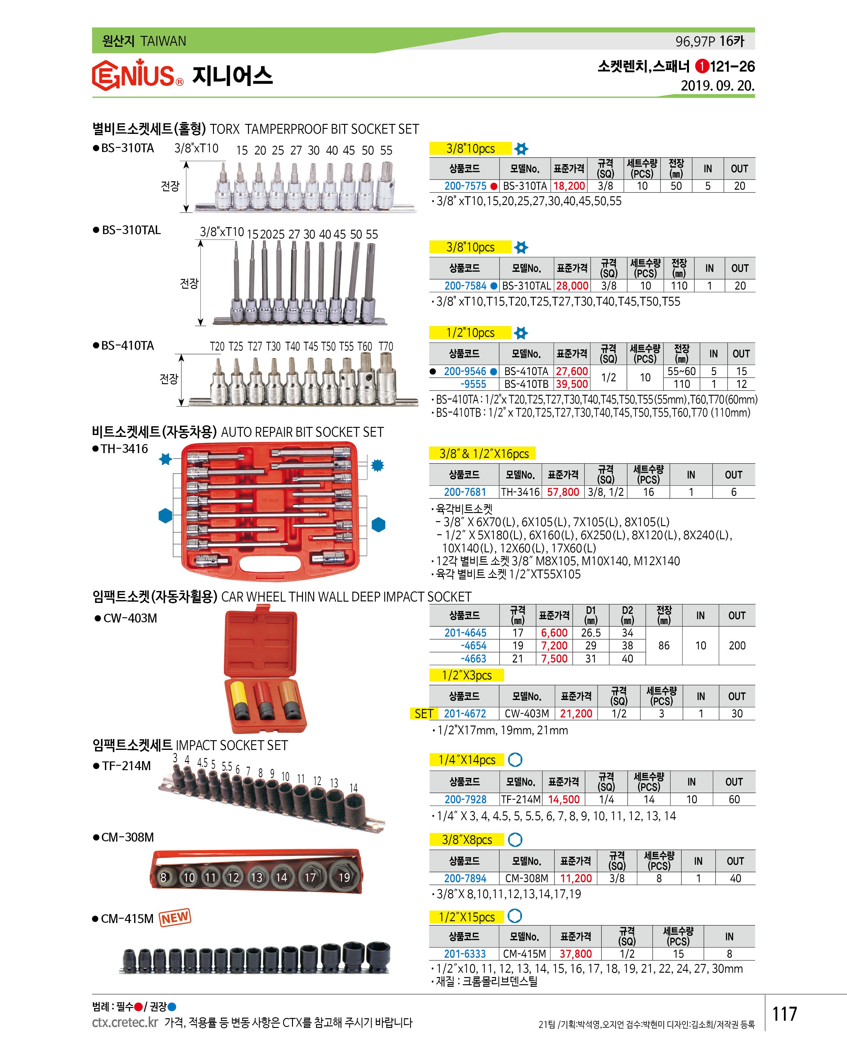 > 지니어스임팩트소켓 임팩트소켓세트(자동차휠용) CW-403M(1/2*17-21)3P