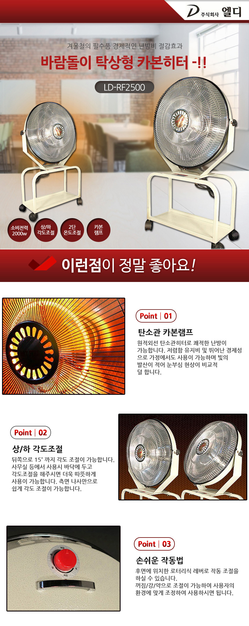 > 원적외선 카본 전기히터 탁상형 (LD-RF2500) 20인치(배송비착불)
