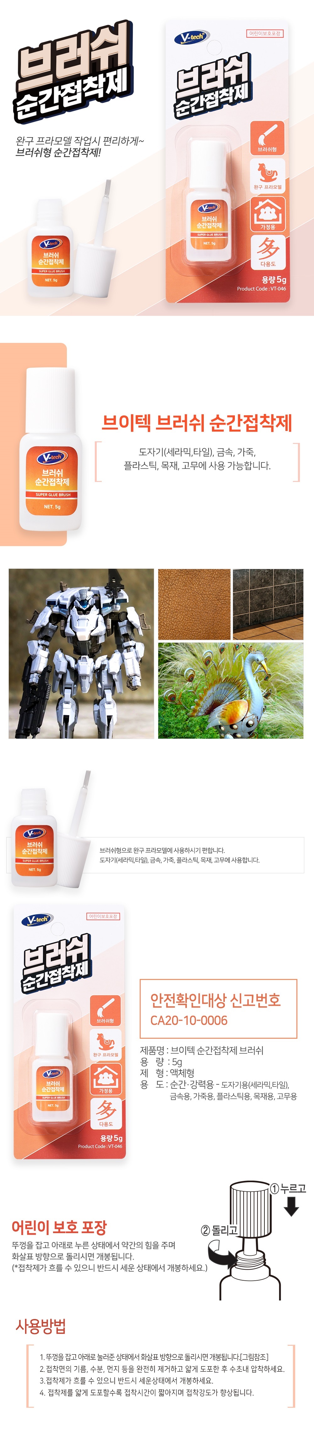 > 브이텍 초강력 다용도 순간접착제 VT-046 브러쉬형 5g