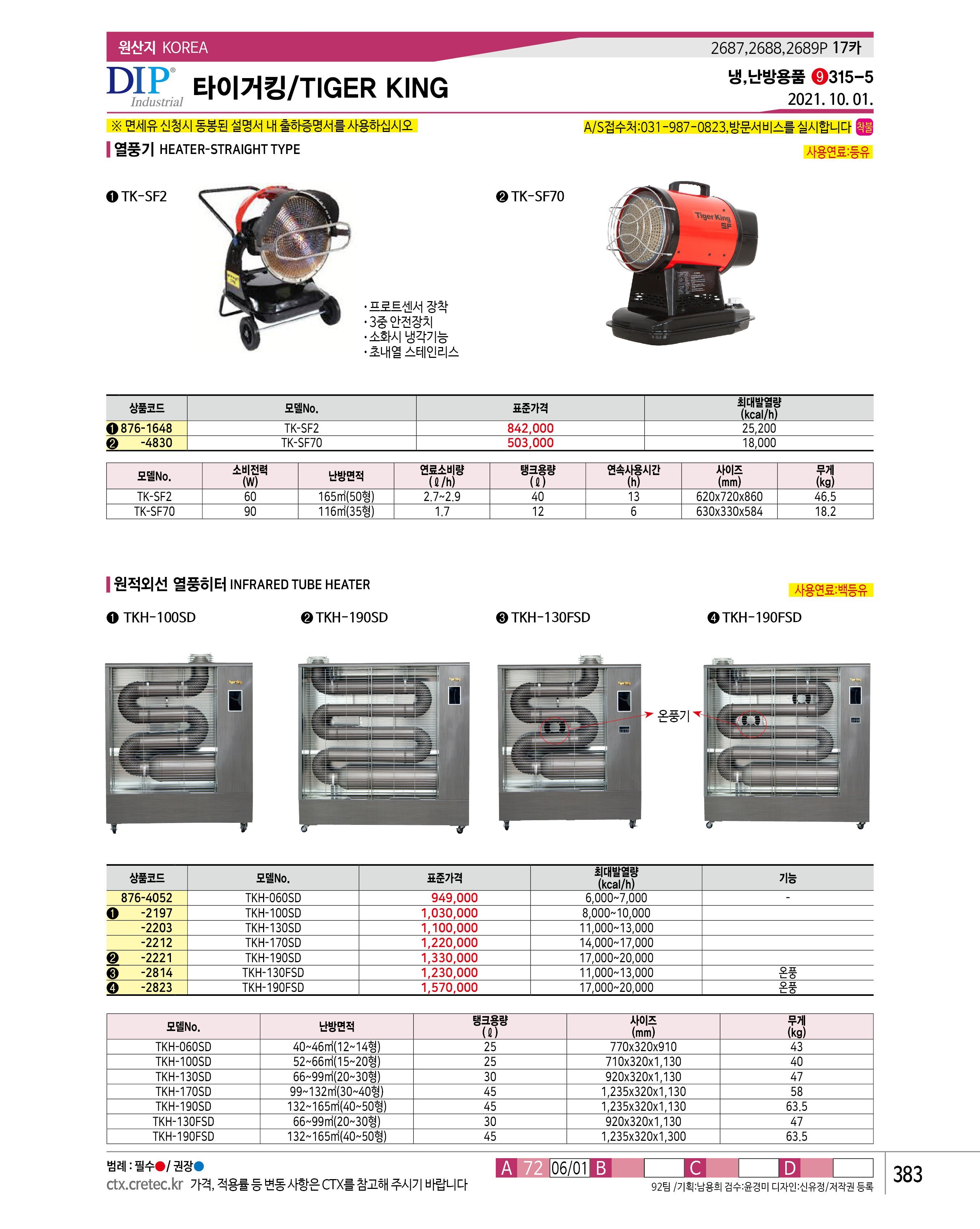 타이거킹 원적외선열풍히터 TKH-190SD(=TKH-190S)(화물착불)